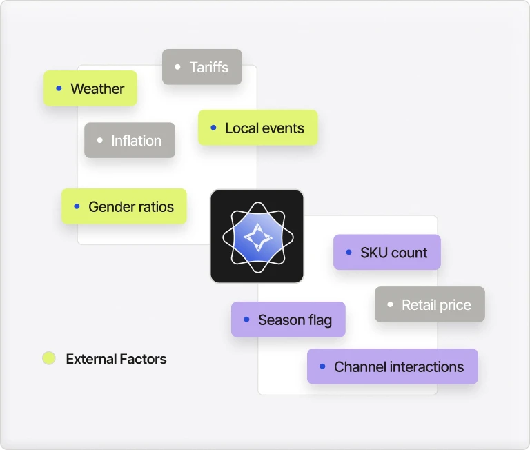 - Dynamically adjust forecasts based on emerging trends, seasonality, weather patterns, and local events.